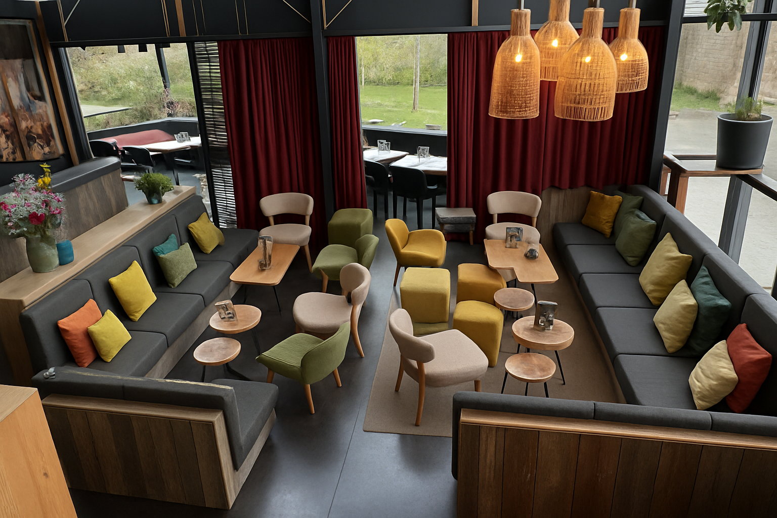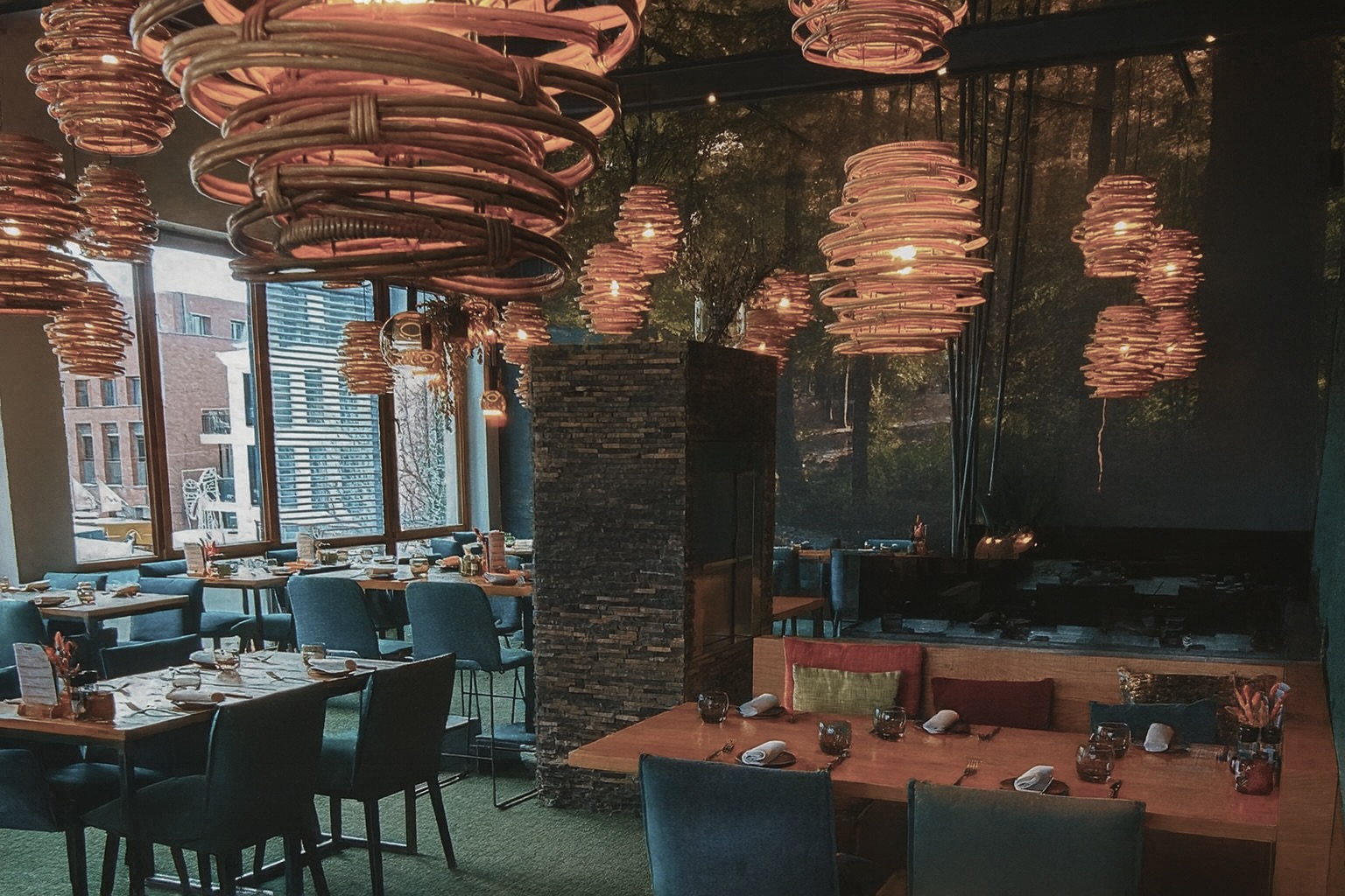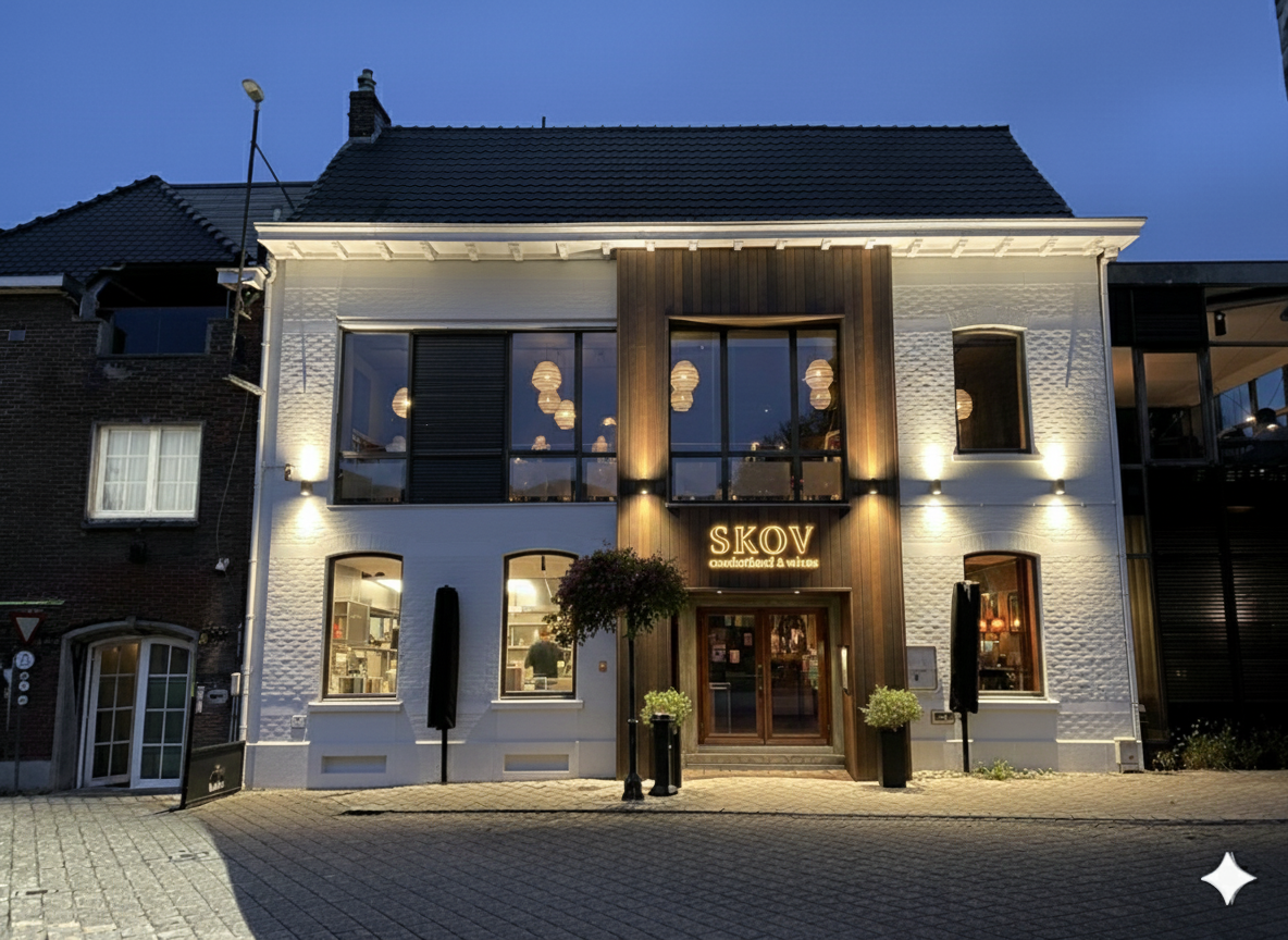 Het interieur is warm en opgebouwd in hout-structuren. U proeft er niet alleen de gerechten, maar ook de beleving. Skov is de plek waar culinair genieten en gezellig samenzijn vanzelf samenkomen.