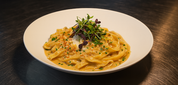 | tortelloni - boschampignons - parmezaan - crumble van spek | |